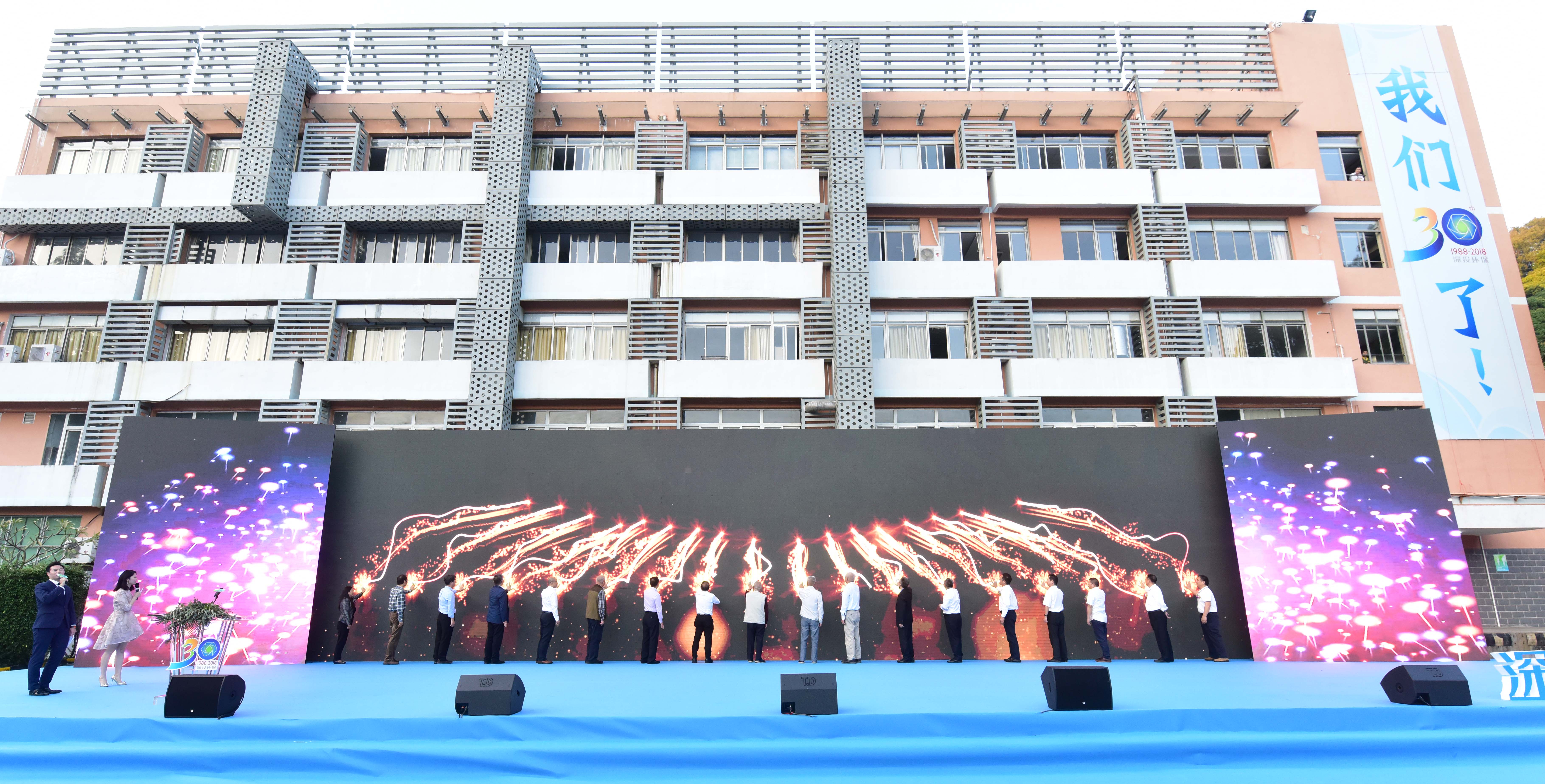 最后,嘉宾共同上台为深投环保点亮30周年司庆火炬。