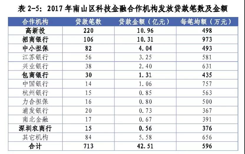 根据白皮书中披露的信息,2017年各机构合计发放南山科技金融贷款713笔,放款金额42.51亿元。