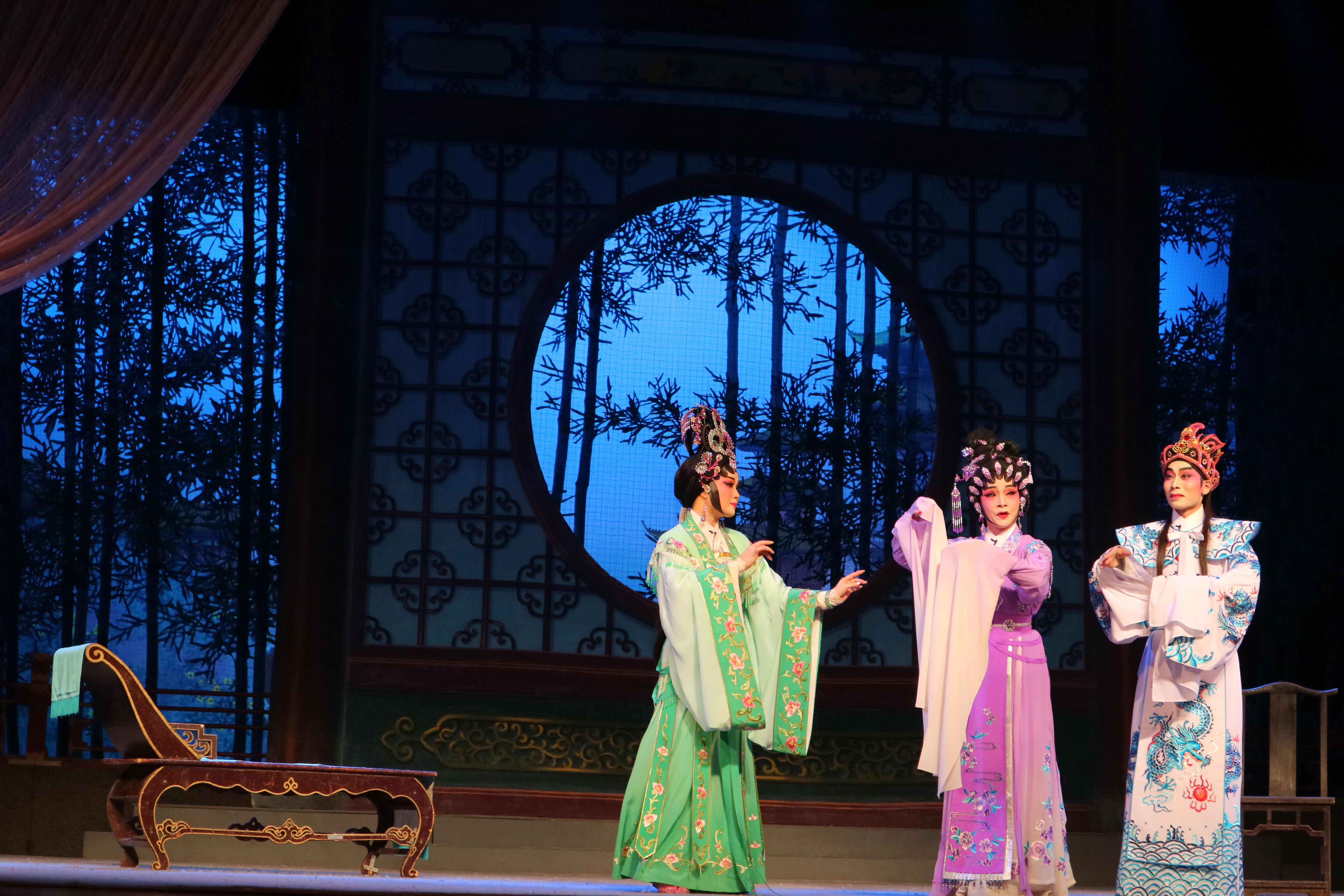 当晚,一折凄怨动人的大型古装粤剧《雾锁东宫》以跌宕起伏的剧情和演员的精彩表演赢得了在场观众经久不息的掌声。《雾锁东宫》由历届广东省文艺会导演奖得主、国内著名戏曲导演郑卫国老师复排,罗家宝入室弟子李江林、广西粤剧大赛金奖得主卜美玲及一众国家级优秀演员联袂出演。
